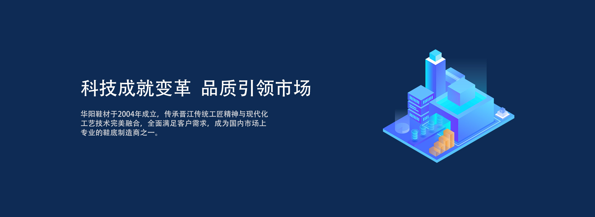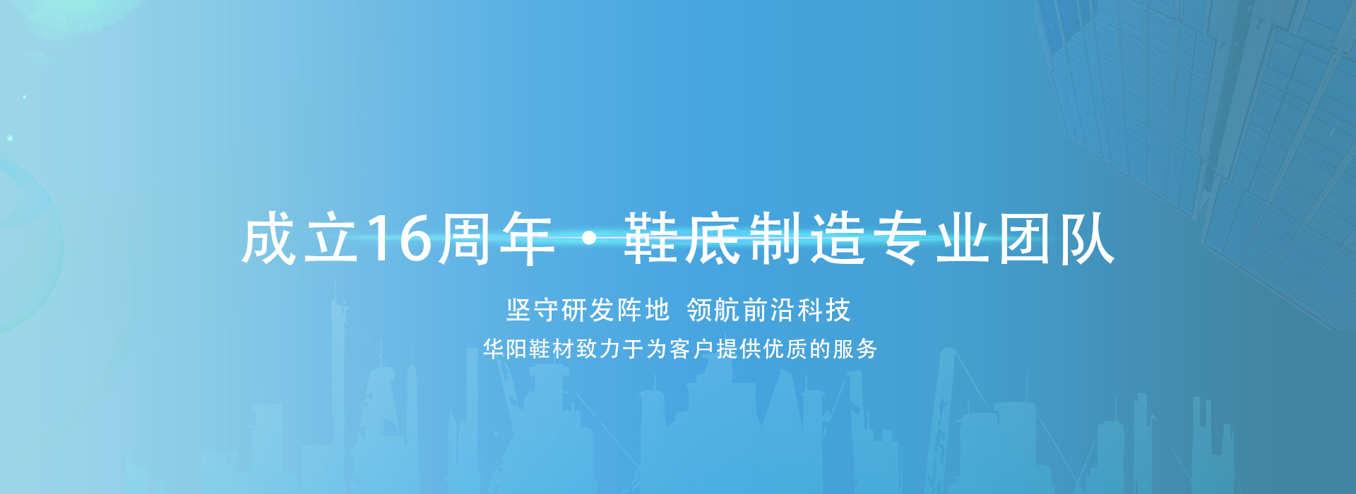 華陽(yáng)鞋材于2004年成立,傳承晉江傳統(tǒng)工匠精神與現(xiàn)代化工藝技術(shù)完美融合,全面滿足客戶需求,成為國(guó)內(nèi)市場(chǎng)上專(zhuān)業(yè)的鞋底制造商之一。多年來(lái),華陽(yáng)鞋材自主研發(fā)及引進(jìn)最先進(jìn)智能生產(chǎn)設(shè)備,致力于生產(chǎn)EVA一次(IP)成型鞋底、EVA二次(MD)成型鞋底、TPR鞋底、RB(橡膠)鞋底,TPU鞋底及配件及底材組合。